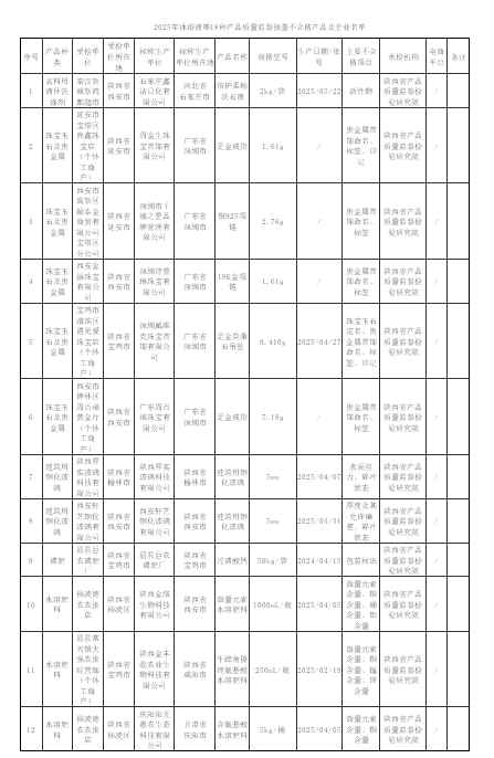 2025年,陕西省市场监督管理局组织开展了沐浴液等18种产品质量监督抽查,现将抽查情况通告如下。